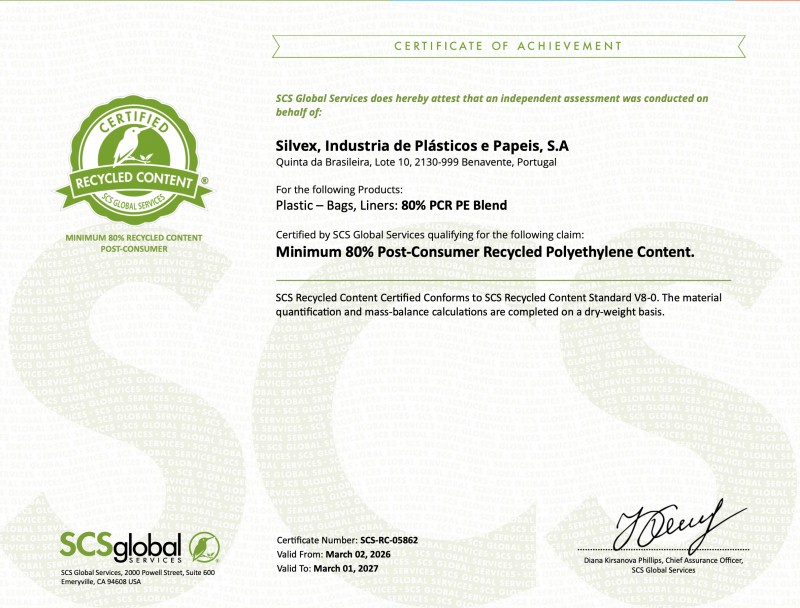 The product(s) meet(s) all of the necessary qualifications to be certified for the following claim(s): SCS RECYCLED CONTENT CERTIFIED Conforms to SCS Recycled Content Standard V7-0 for a Minimum 80% Post-Consumer Recycled Polyethylene Content. The material quantification and mass-balance calculations are completed on a dry-weight basis.
